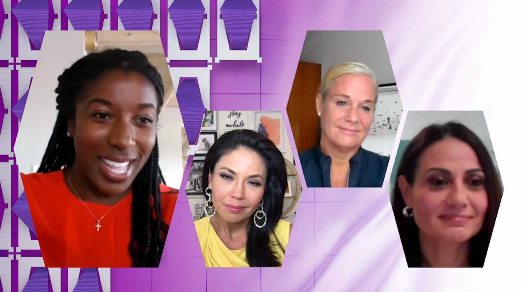 On a panel discussion about navigating the changing corporate landscape (from l.): Wonder Women Georgia Juvelis, EVP and co-head, corporate communications, AMC Networks; Samantha Cooper, EVP of global content licensing, ViacomCBS; Jeanine Liburd, chief social impact and communications officer, BET Networks; and host Brittany Johnson of Podcast Village.