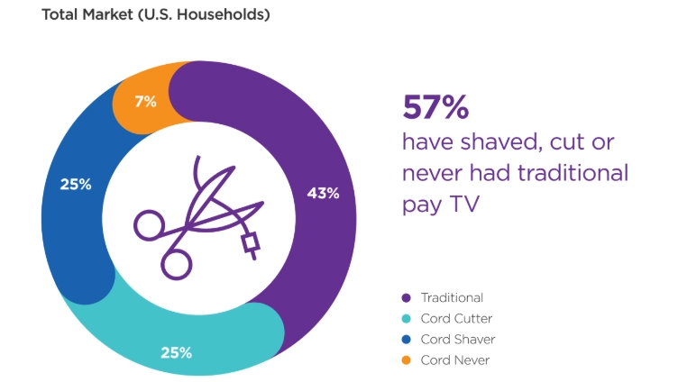 The study said that 25% of households identified as cord shavers cut back on their pay TV service, with 45% of cord shavers saying they’re likely to cut the cord entirely in the next six months.