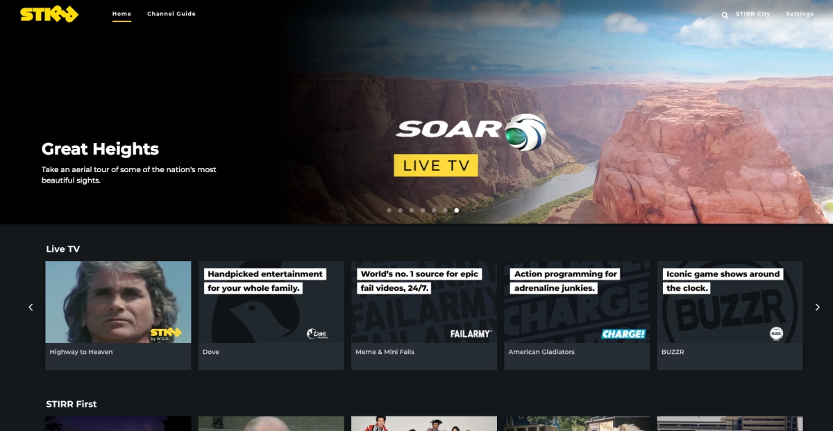 Sinclair launched STIRR in January 2019 with about 24 channels. Today the broadcaster said the service has about 1.6 million app downloads and offers more than 100 channels, including live local news and sports.