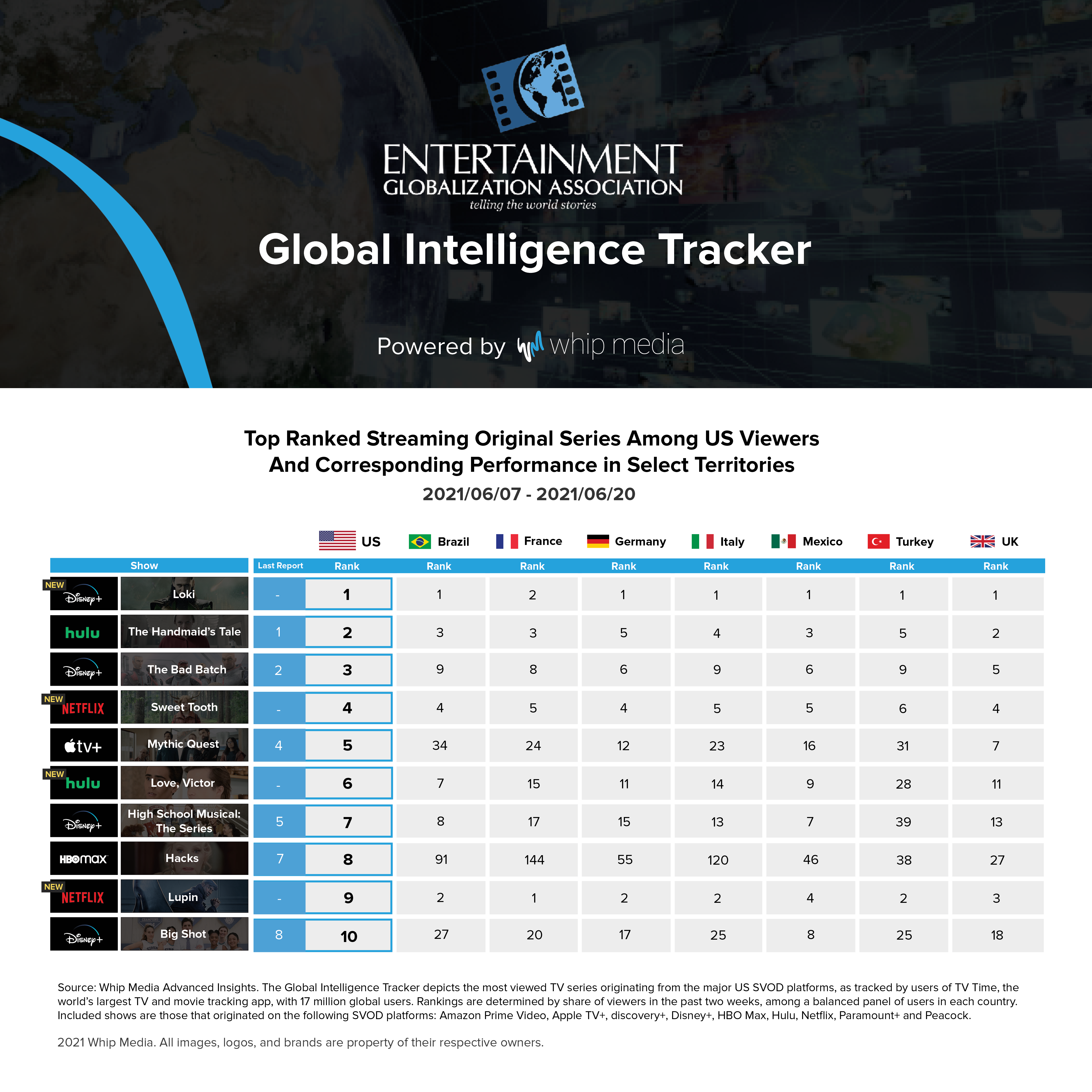 Whip Media and the Entertainment Globalization Association are teaming up to create a new bi-monthly report called the Global Intelligence Tracker, which will show how U.S. programs produced for streaming are performing in other countries.