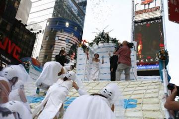 Ten soon-to-be brides showed up in Times Square Tuesday morning to race up a 10-foot high piece of wedding cake to win $25,000 from WE TV as part of a promotion for the fifth season of the network's ‘Bridezillas' series.